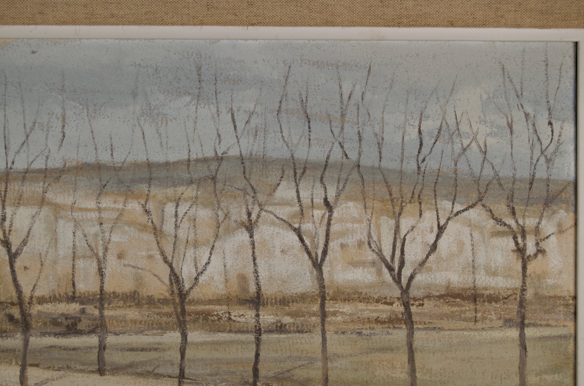 Als ich dieses Werk von O’Callaghan für den Workshop auswählte, fesselten mich sofort zwei Dinge. Zum einen die ungewöhnliche Vertikalität; ein Format, das mit der Tradition der horizontalen Landschaftsmalerei bricht und den Blick beinahe asketisch vom Land zum Himmel wandern lässt. Zum anderen, und das war noch wichtiger, die Textur. Es handelt sich hier nicht einfach um eine gemalte, sondern um eine konstruierte Landschaft. Bei genauerem Hinsehen erkannte ich, wie der Künstler mit dem Material rang, die Ölfarbe mit dem Spachtel auftrug und so Furchen und Reliefs schuf, die das Licht einfangen und der Kargheit der kastilischen Landschaft Form verleihen. Es ist ein Werk, das aus der Nähe betrachtet werden muss, um es wirklich zu erfassen, und aus der Ferne, um seine stille Festigkeit zu begreifen.