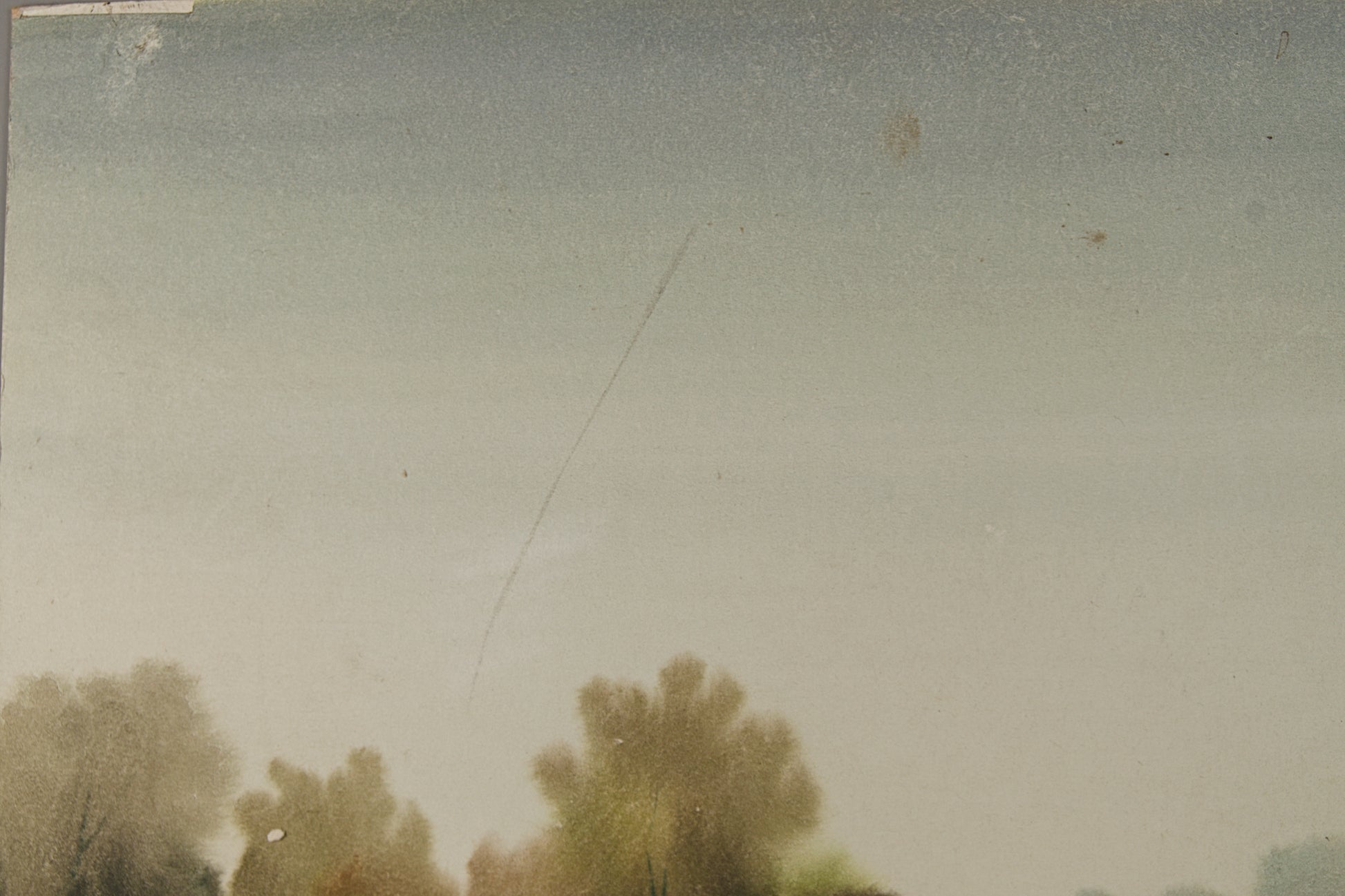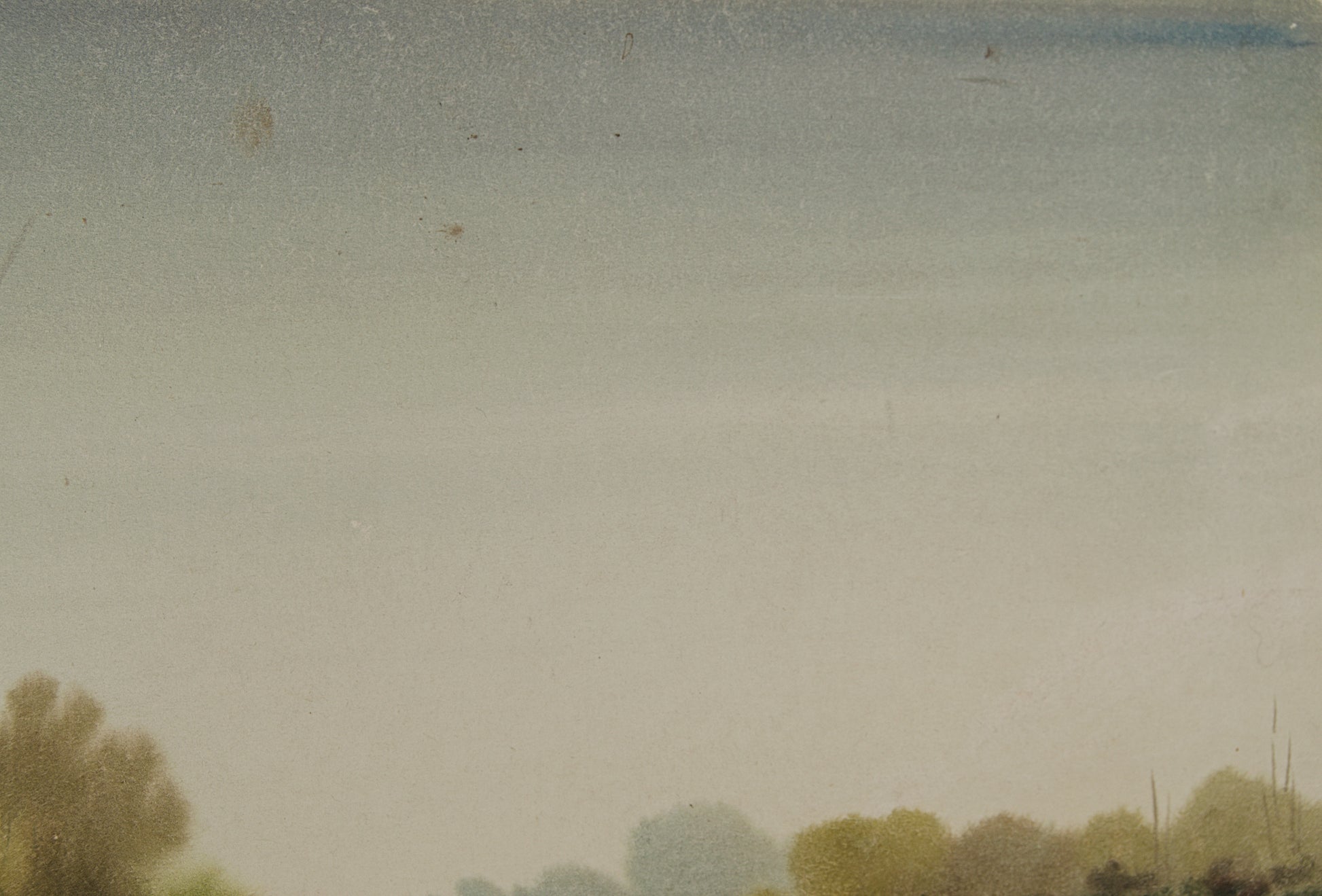 Estado de Conservación y Nota Curatorial: Buen estado general de época. Los pigmentos conservan su frescura e integridad cromática original, sin oxidación generalizada. Nota de archivo: Como es habitual en obras históricas sobre soportes rígidos sin protección acristalada previa, la superficie presenta un leve roce o estría diagonal en el tercio superior izquierdo (zona del cielo). Esta marca superficial, atenuada por la propia textura de la niebla, certifica su historicidad y no compromete el magnetismo visual de la pieza.