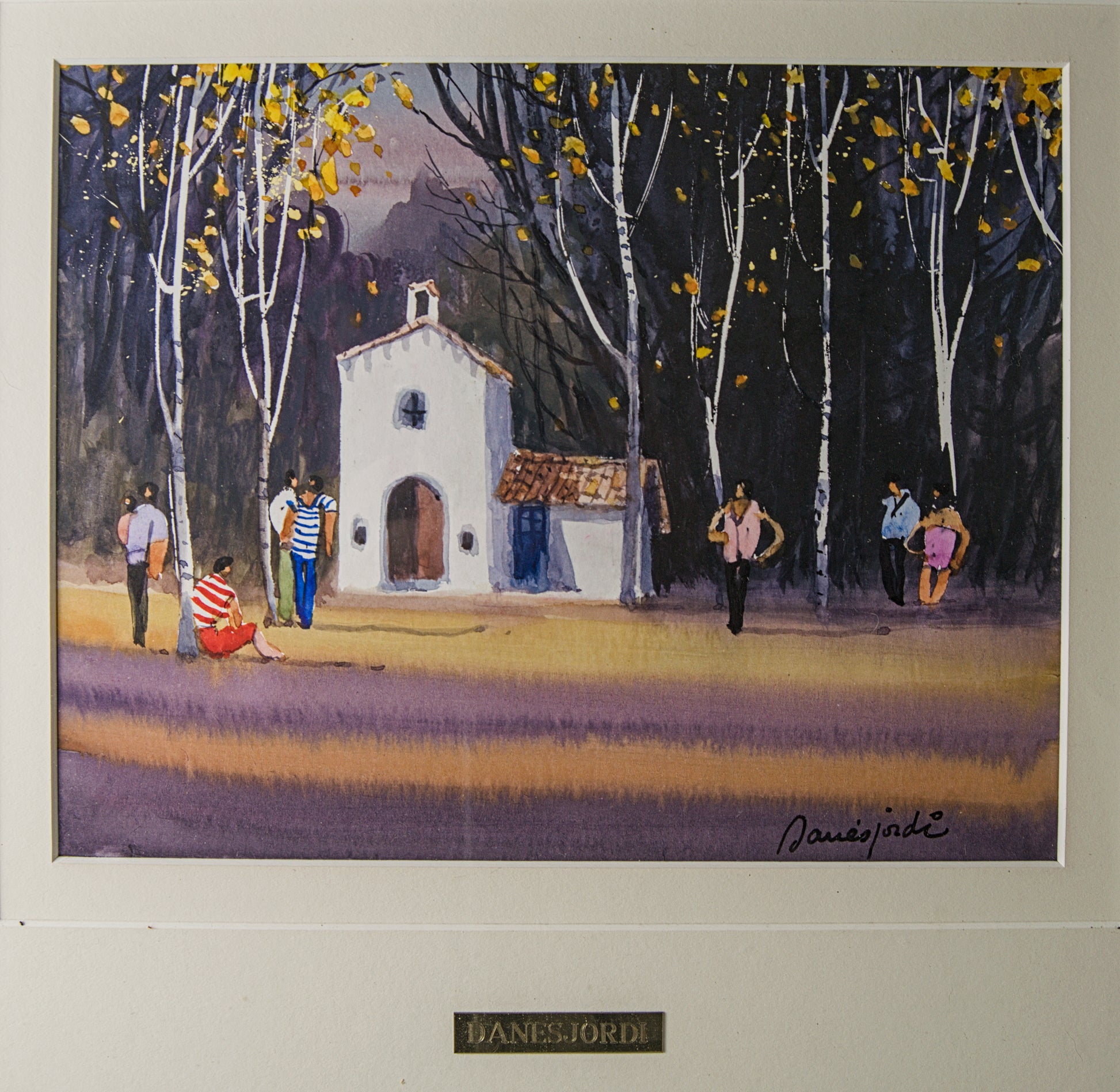 JORDI DANÉS | REUNIÓN EN LA ERMITA | ESCUELA DE OLOT CONTEMPORÁNEA | ACRÍLICO ORIGINAL