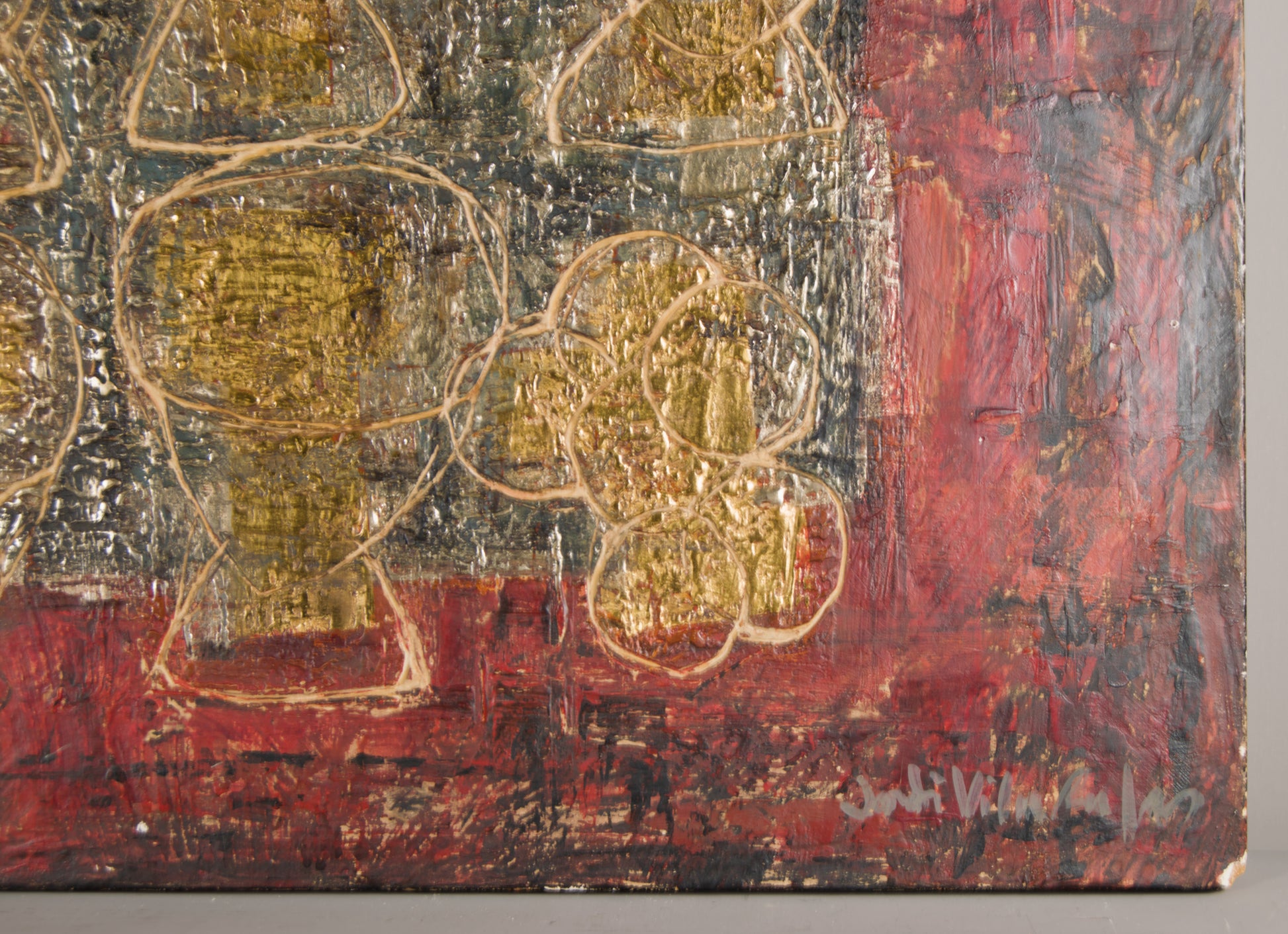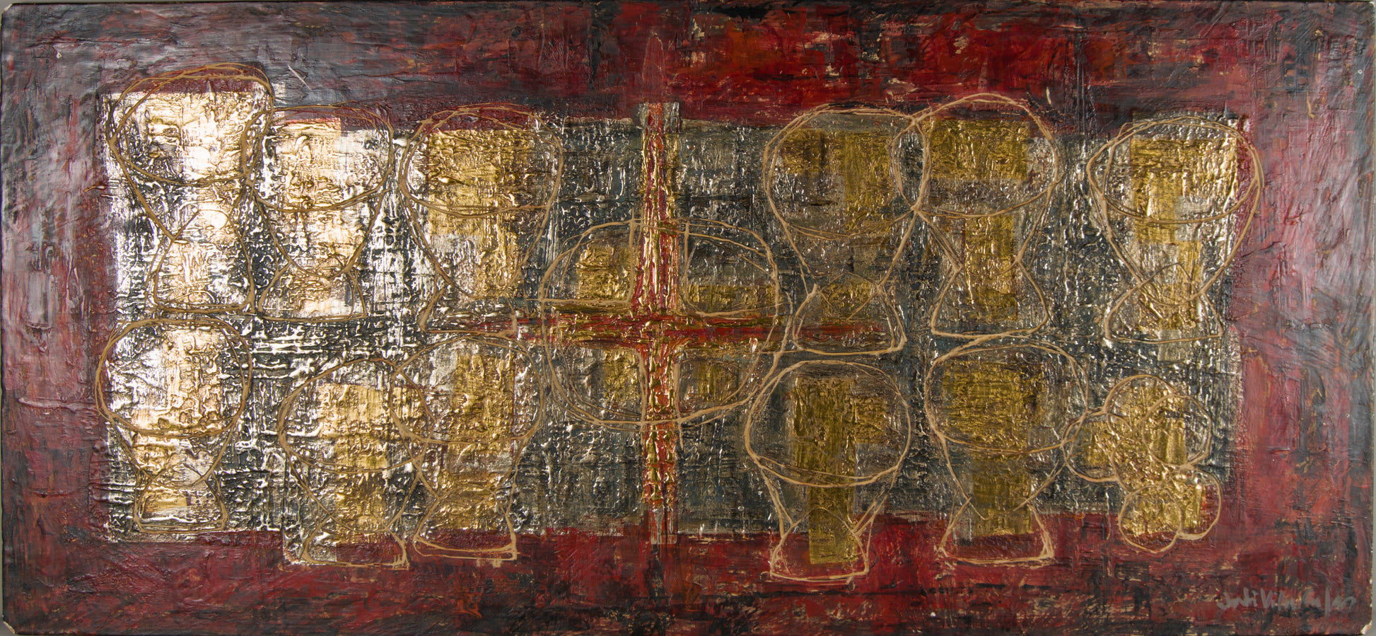 Jordi Vila Rufas (Barcelona, 1924–2011) war nicht nur Maler, sondern ein Architekt der Bildfläche. Als Sohn des Landschaftsmalers Joan Vila-Puig und prominentes Mitglied der Grup Lais widmete Vila Rufas sein Leben einer komplexen Mission: die religiöse Kunst zu erneuern, ohne ihre angestammte Mystik zu verlieren. Dieses Werk ist ein meisterhaftes Beispiel für dieses Bestreben. Abseits des Andachtsdrucks greift der Künstler die Essenz des mittelalterlichen Altarbildes – das Gold, das Holz, die Symbolik – wieder auf und unterzieht sie der Spannung des Nachkriegs-Informalismus. So entsteht ein Objekt, das wie aus einer modernen Kathedrale gerettet wirkt.