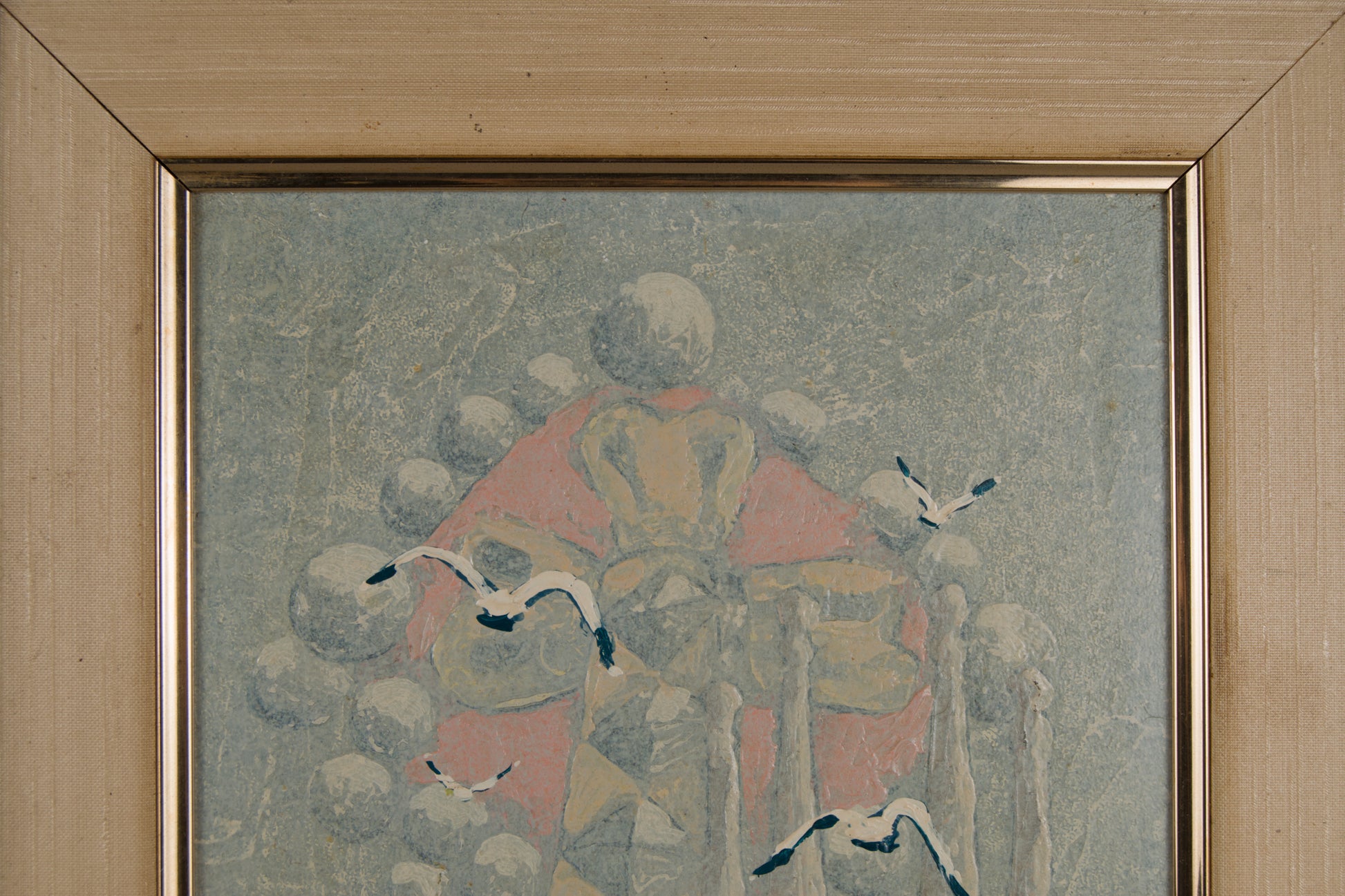 Klassische Rahmung: Der vergoldete und profilierte Rahmen bildet einen interessanten Kontrast: Er umschließt eine moderne und verschwommene Vision innerhalb einer klassischen Struktur und hebt so die Kategorie des Werkes an.