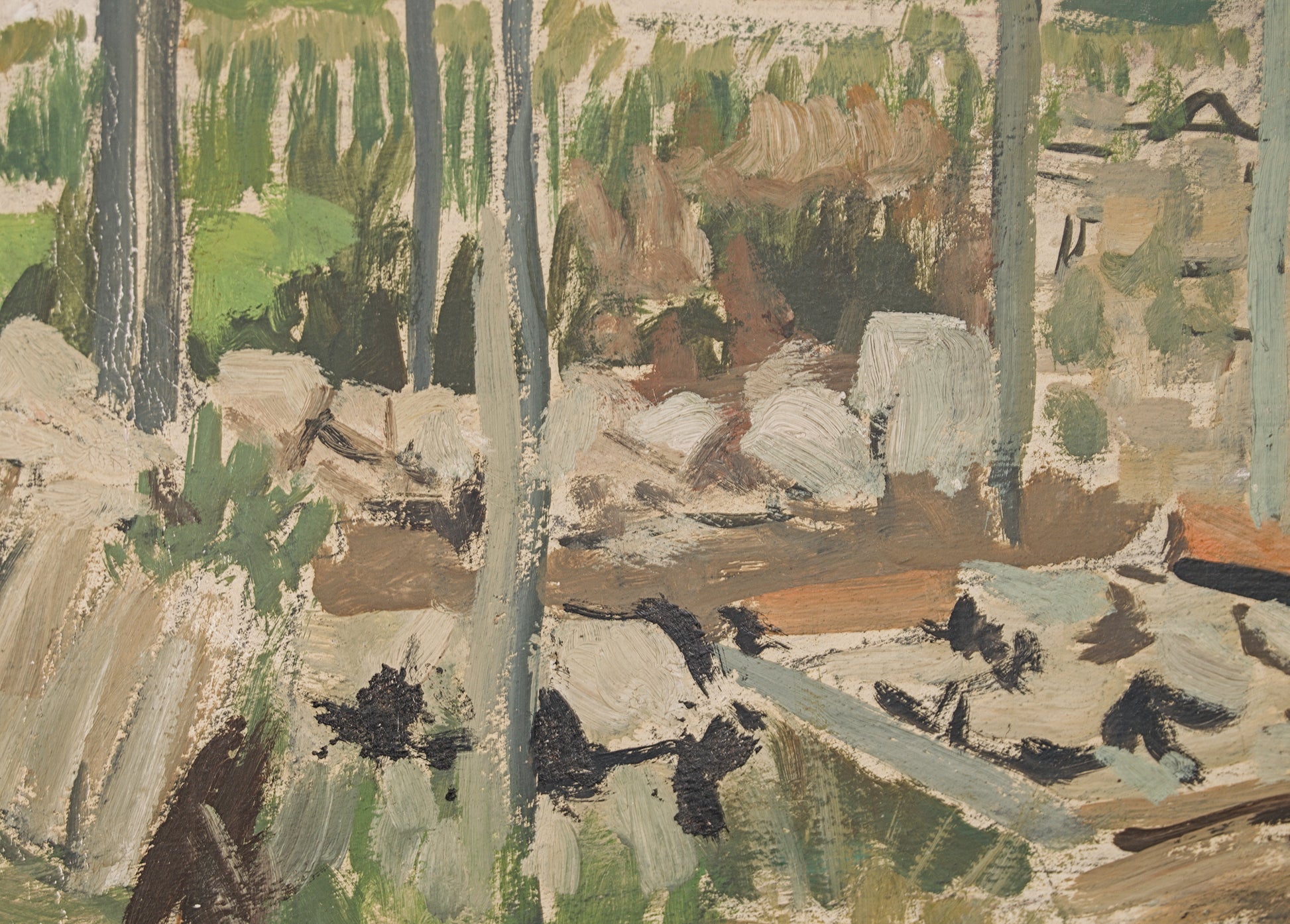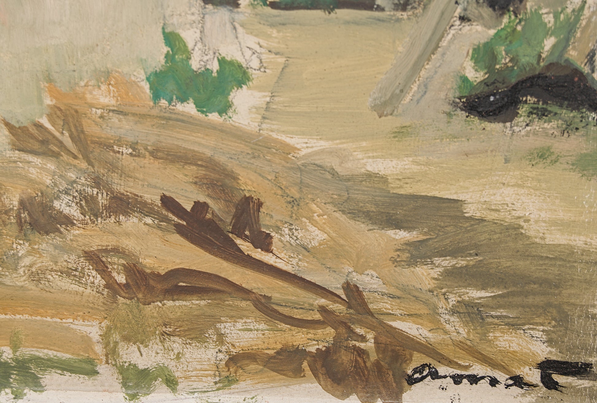 Adquirir este díptico es hacerse con un fragmento fundamental de la historia del arte catalán del siglo XX. Josep Amat Pagès (1901-1991), figura capital del paisajismo y nombre insustituible de la histórica Sala Parés, nos regala aquí una visión ambiciosa y dilatada del paisaje. Rompiendo los límites del caballete tradicional, Amat no nos presenta un cuadro convencional, sino una experiencia visual expandida: dos tablas que, unidas, conforman una rotunda panorámica que captura la esencia vibrante de los alrededores urbanos o las comarcas gerundenses.