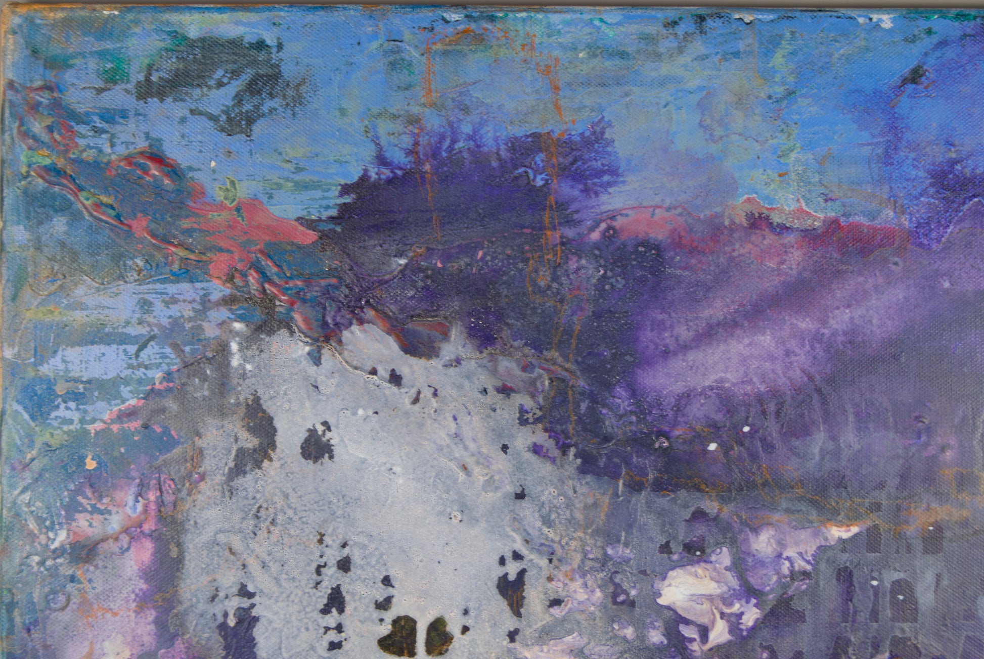 MONTSE PIÑOL | ABSTRAKTE KOMPOSITION „VIOLETTISCHE ATMOSPHÄRE“ | LYRISCHE ABSTRAKTION / TRIPPEN | ÖL AUF LEINWAND