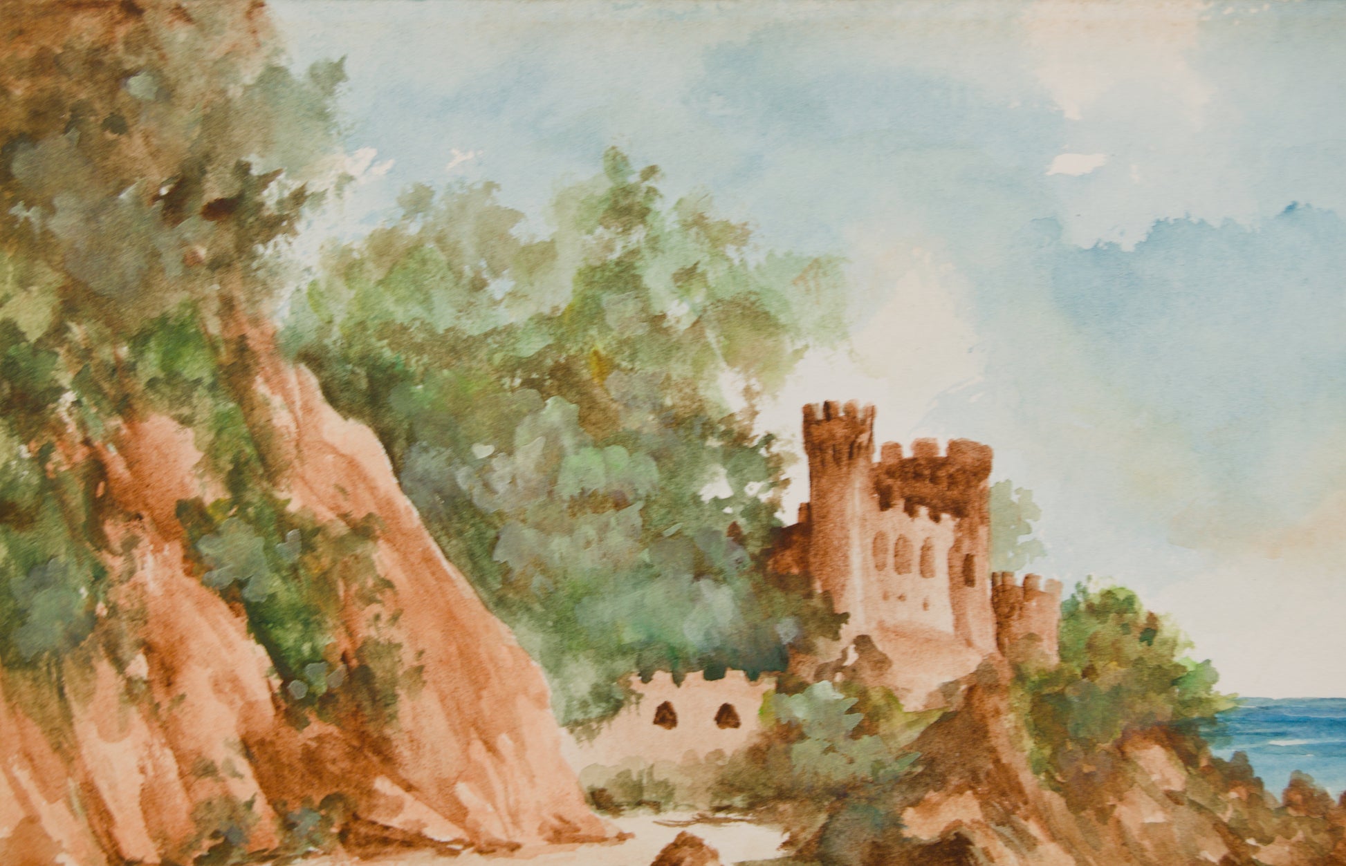PIJIULA | VISTA DEL CASTELL D'EN PLAJA (LLORET) | ACUARELA ORIGINAL | PAISAJISMO CATALÁN