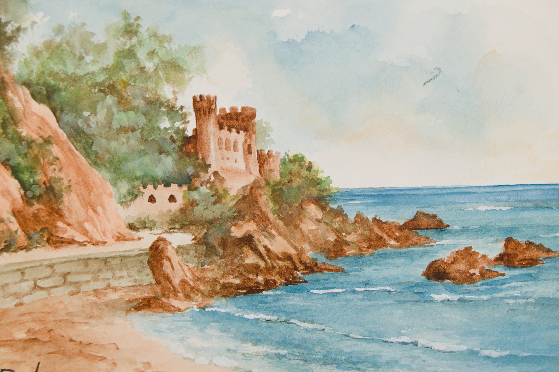 Pintar la Costa Brava no es solo reflejar su geografía abrupta; es atrapar su luz cegadora. El artista logra en este papel ese difícil equilibrio entre el peso de la historia (el castillo) y la ligereza del instante (la ola). Un fragmento de la costa catalana, indispensable para el coleccionista que venera la erudición geográfica y la honestidad de la técnica al agua.