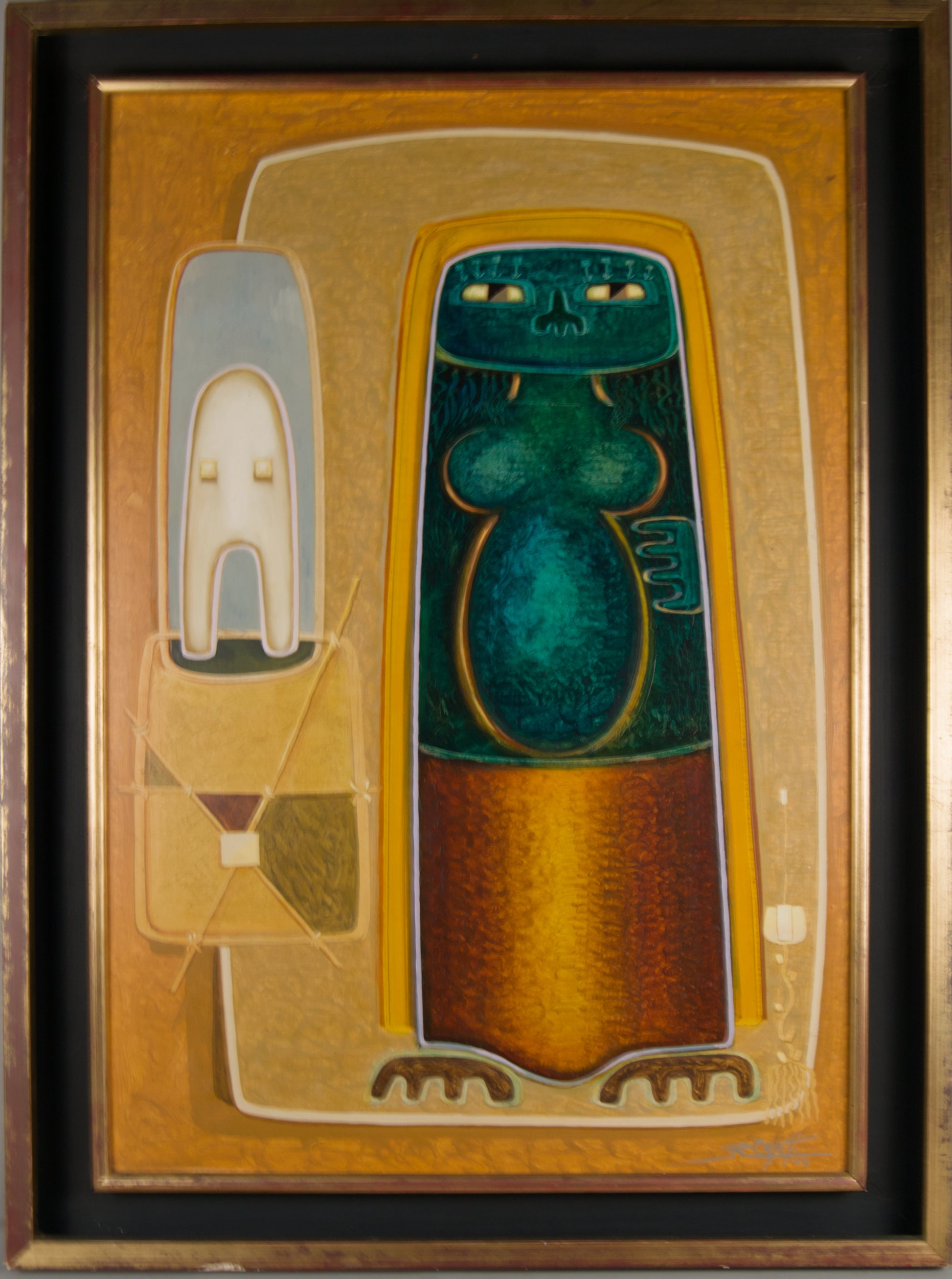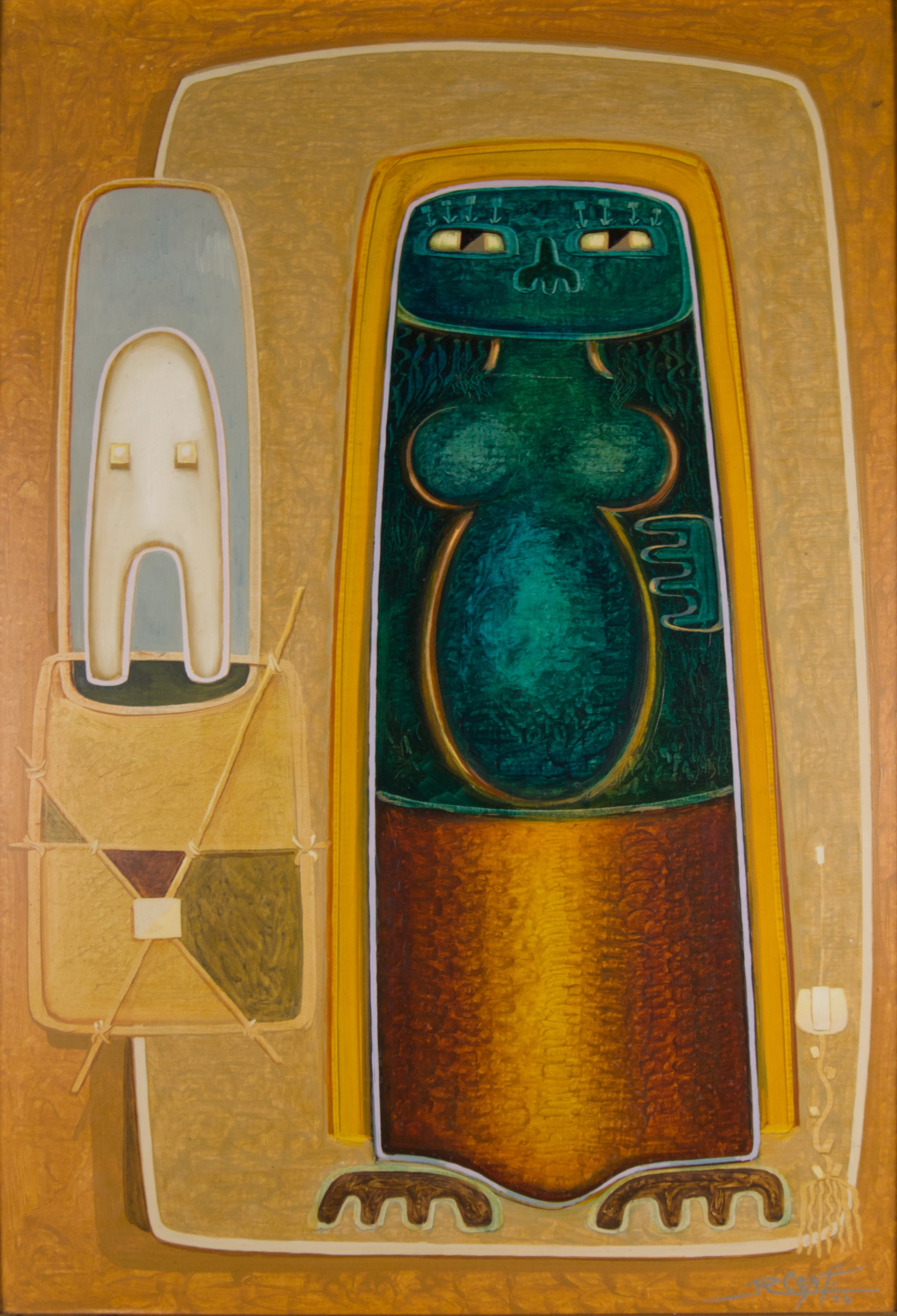 RAÚL CONTI | GEOMETRISCHE FIGURATION | KONSTRUKTIVISMUS MIT PRÄKOLUMBIANISCHEN WURZELN | ÖL AUF TAFEL