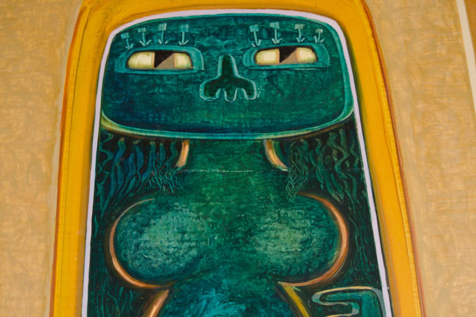 Titel / Thema: Konstruktivistische Komposition mit präkolumbianischen Anklängen.