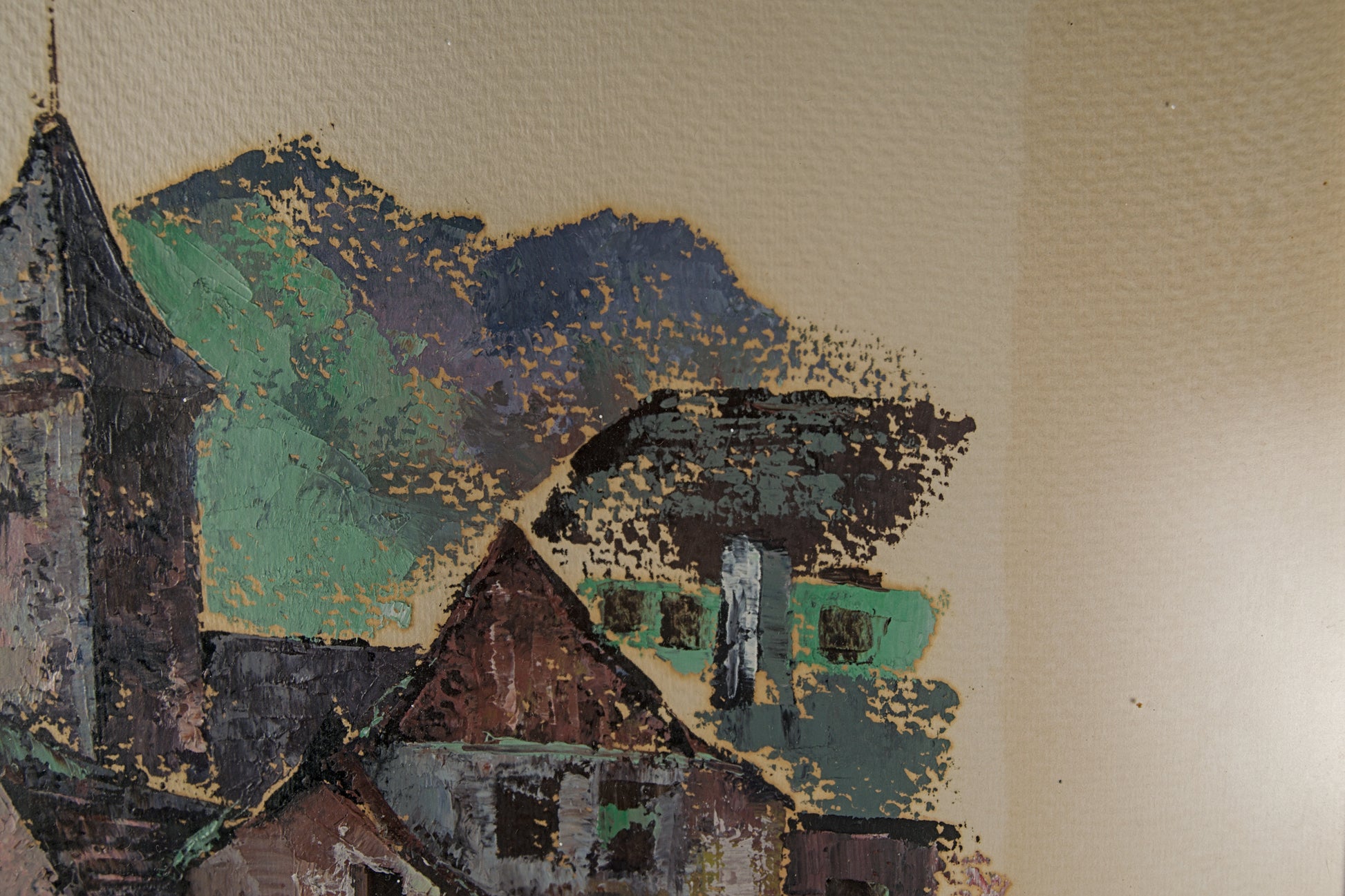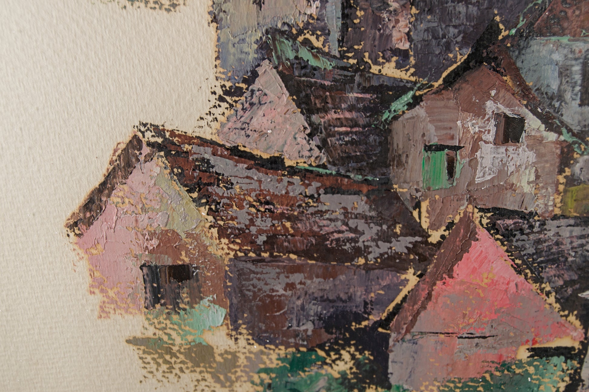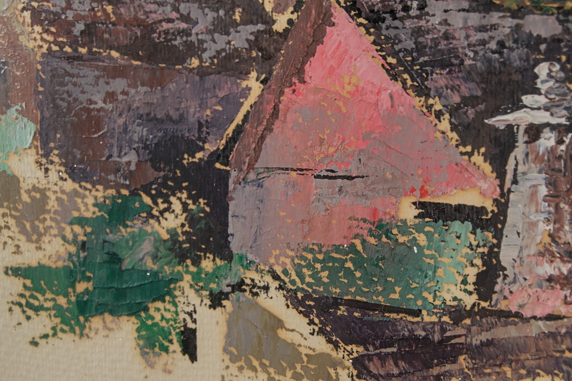 El valor diferenciador de este paisaje radica en su audacia táctil. No estamos ante una mera representación gráfica de un pueblo, sino ante un ejercicio de construcción donde el óleo es literalmente la piedra. La valentía de Escartín, introduciendo rosas y esmeraldas para iluminar la dureza del Pirineo, dota a la obra de una modernidad y una vitalidad que atrapan la mirada de forma instantánea. Una pieza rotunda, con peso y carácter.