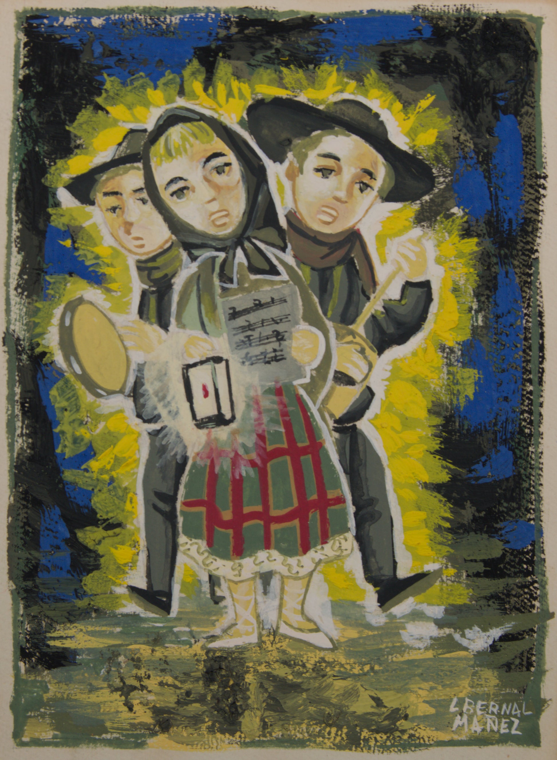 LUIS A. BERNAL MÁÑEZ | VILLANCIQUEROS (CORO TRADICIONAL) | TÉCNICA MIXTA | COSTUMBRISMO ESPAÑOL