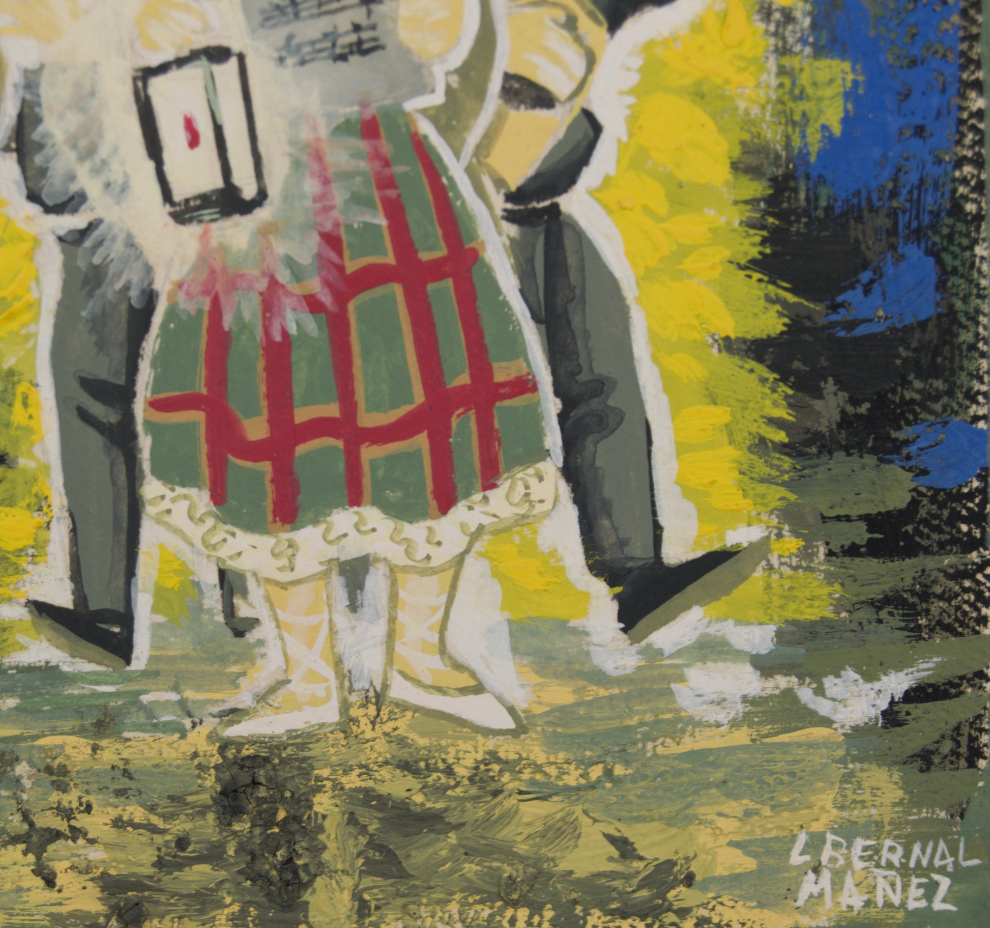 Las grandes historias a menudo caben en los formatos más pequeños. Bernal Máñez nos entrega aquí una cápsula de nostalgia bellamente ejecutada. Es una pieza erudita que celebra la raíz popular, ideal para el coleccionista que busca enriquecer su gabinete con pintura figurativa que posea alma, oficio y un innegable valor antropológico.