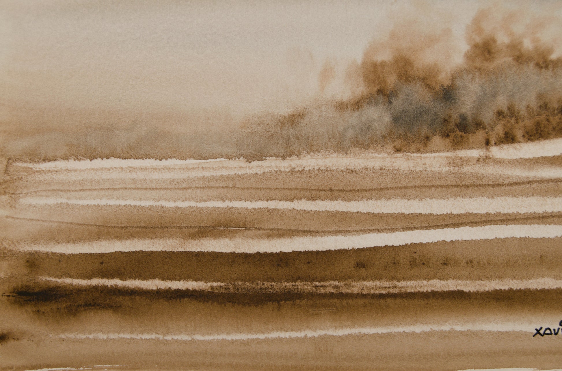 XAVIER UBACH | PAISAJE EN SEPIA (1990) | ACUARELA ORIGINAL | ABSTRACCIÓN LÍRICA
